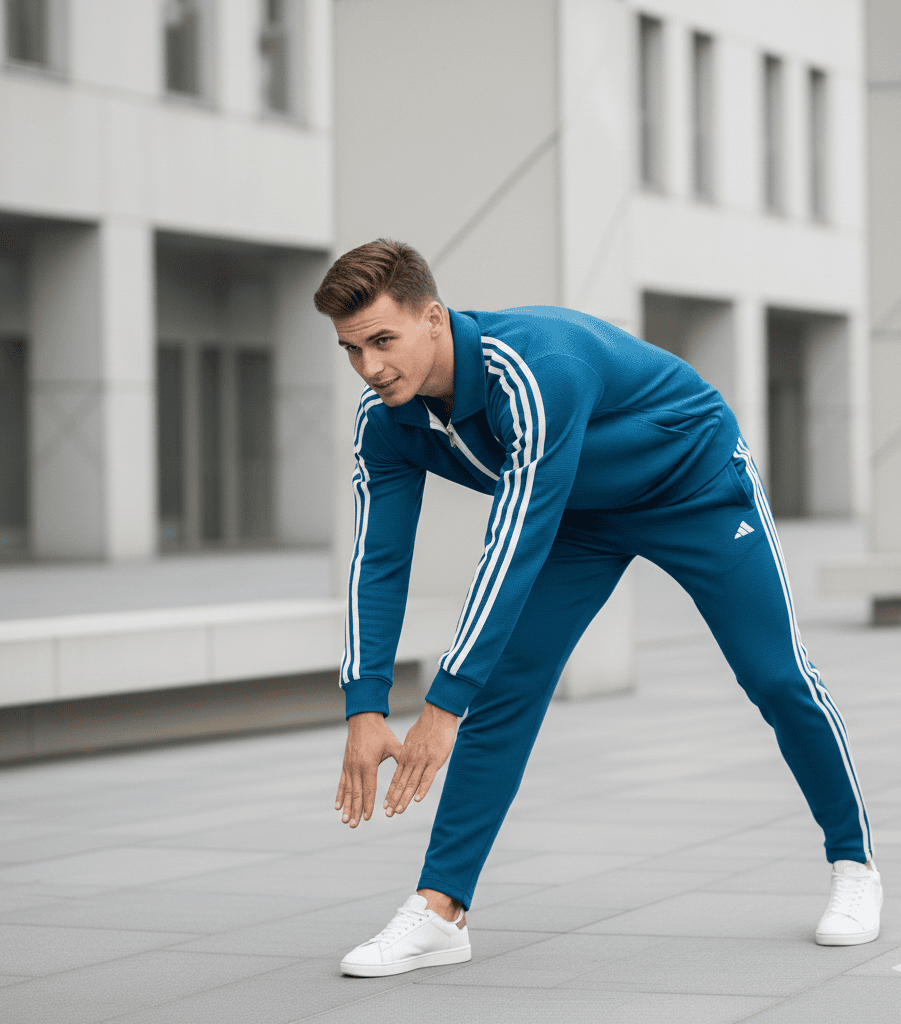 • Iconic 3-Stripe Detailing: The legendary three white stripes run down both sleeves of the top and the left leg of the trousers, providing unmistakable Adidas heritage and bold contrast against the Teal Blue fabric.