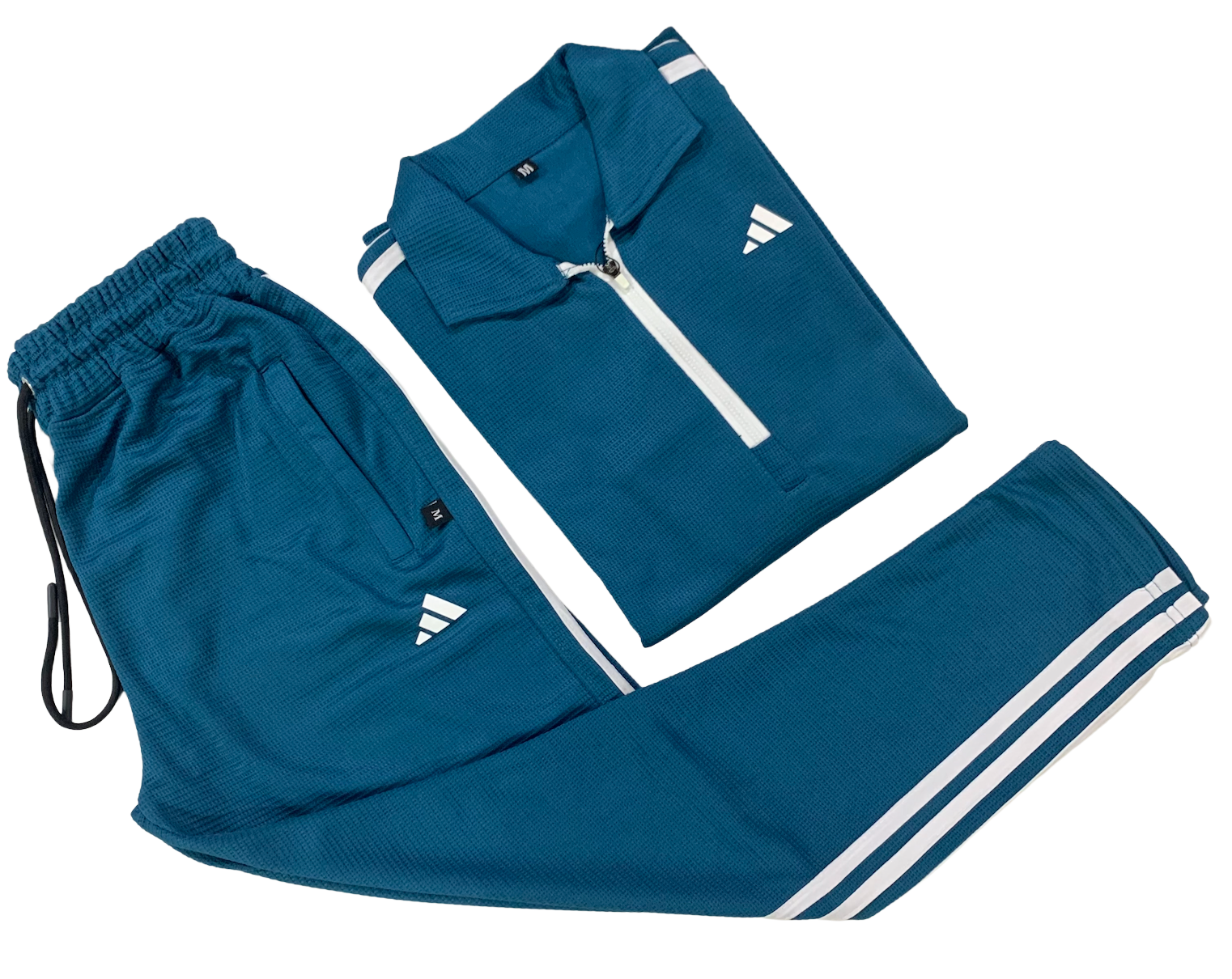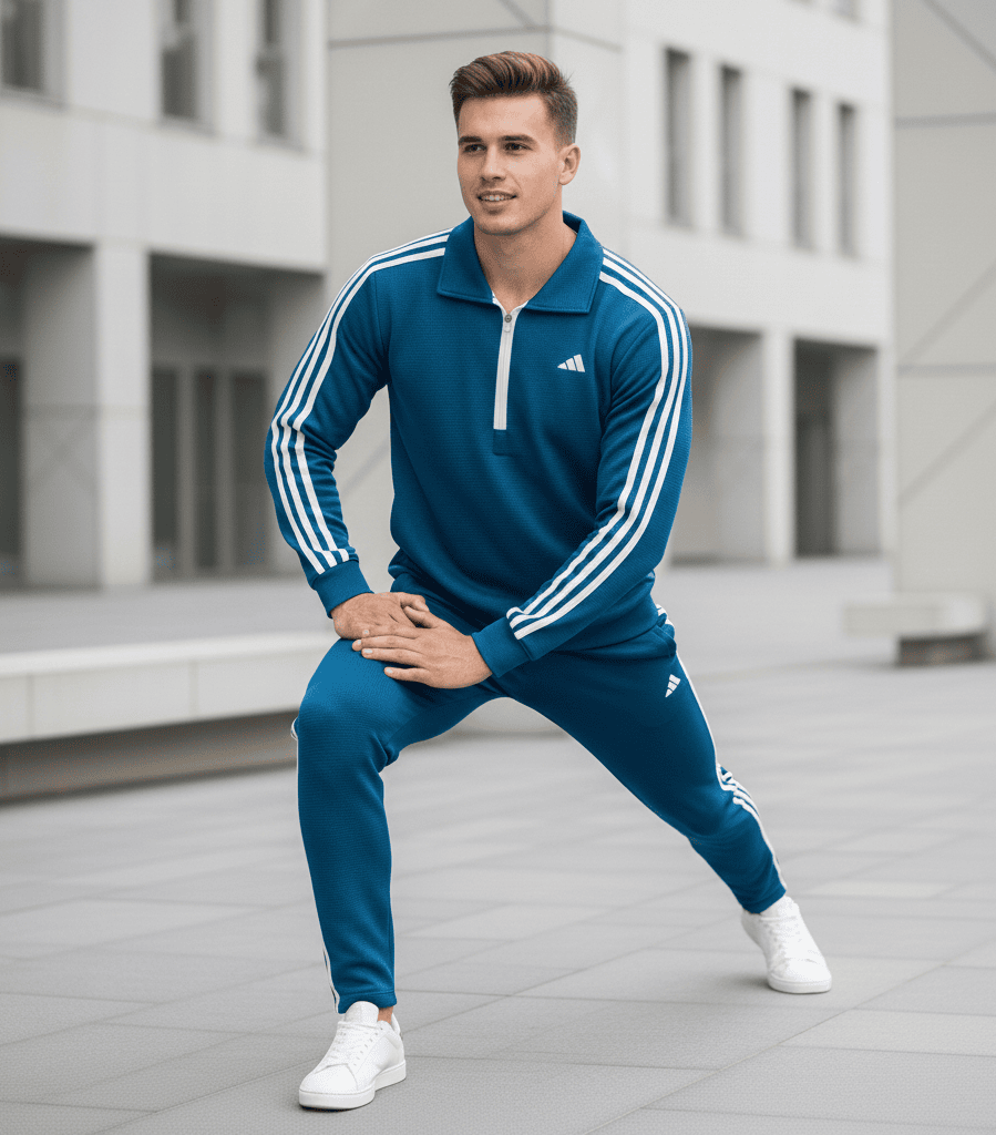 Embrace a timeless athletic look with the ADIDAS 3-Stripe Collar Half-Zip Check Tracksuit, the ultimate blend of heritage style and modern comfort. Tailored for an authentic, relaxed fit, this premium two-piece set is crafted from a distinctive, textured knit fabric, making it an essential, versatile addition to your year-round activewear or casual wardrobe. Defined by its sophisticated Teal Blue color and the iconic Adidas three-stripe detailing, this tracksuit delivers both style and exceptional utility, whether you’re warming up or stepping out.