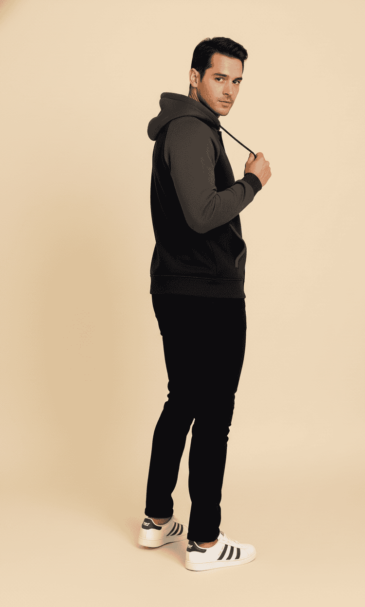 - Snap-Button Front: The full-length snap-button placket offers versatile styling, allowing the hoodie to be worn open like a jacket or closed for maximum warmth.