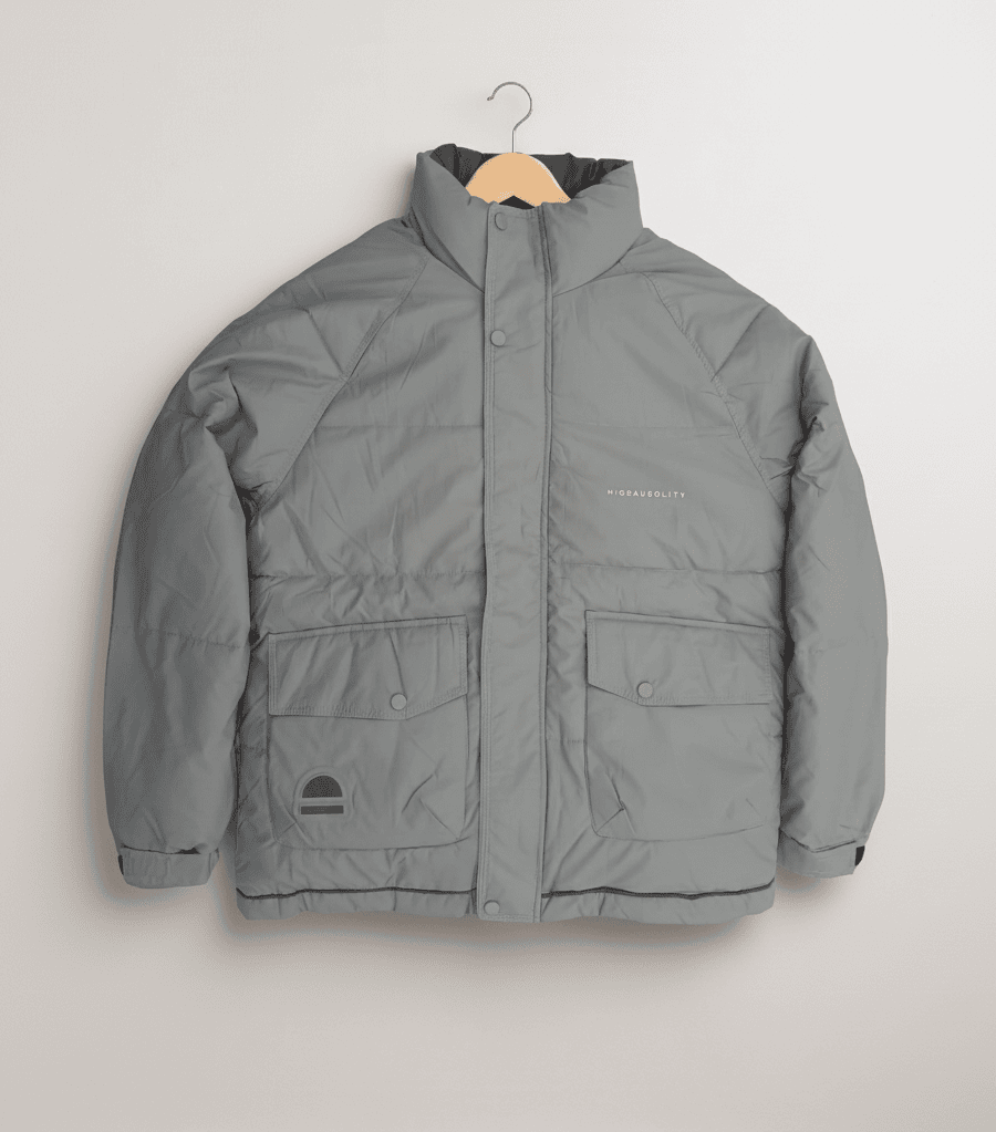 The Men’s HUGEAUSOLITY Parashoot Colar Jacket includes medium-to-heavyweight puffer insulation set inside wide, even baffles. This ensures consistent warmth throughout the body while still allowing easy movement. Raglan sleeves enhance mobility, and the elasticated cuffs help seal in heat. Because of these thoughtful details, the jacket performs well in winter conditions without sacrificing comfort.