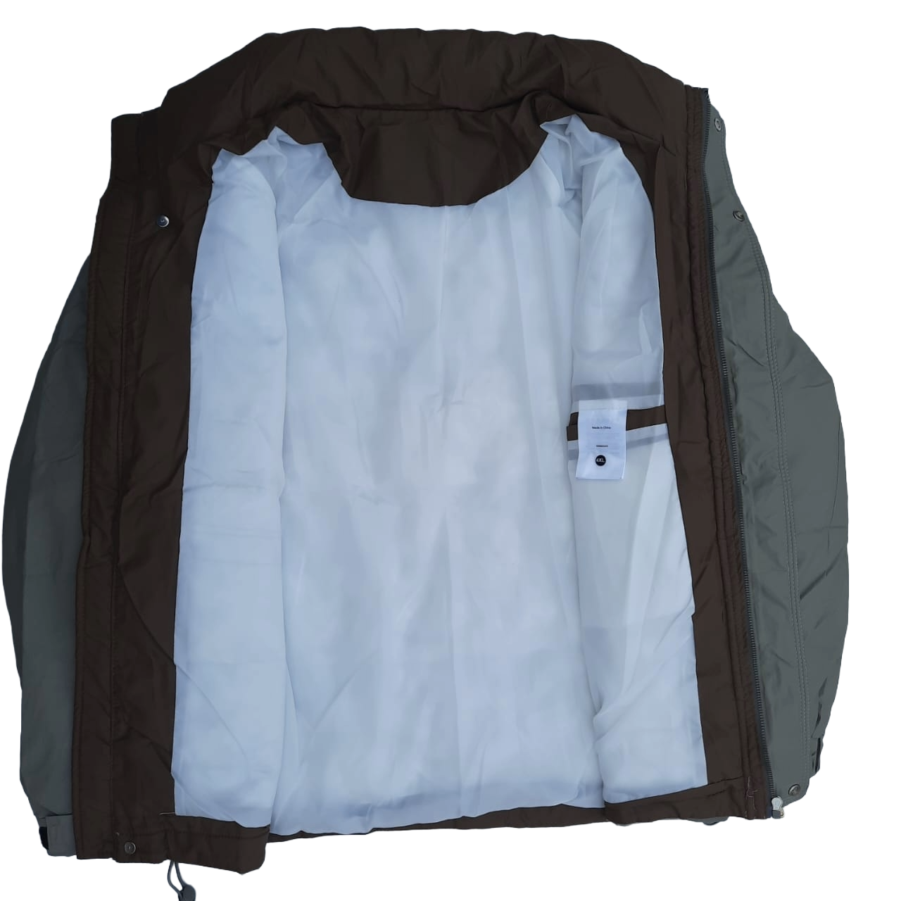 The design features a slightly oversized silhouette that adds comfort without looking bulky. Its high parachute collar and snap-button storm flap help shield you from cold winds, while the light olive ripstop shell provides resistance against tearing and daily wear. In addition, the Dark Brown lining and trims create a smooth visual contrast, giving the jacket a premium feel whether zipped up or worn open.