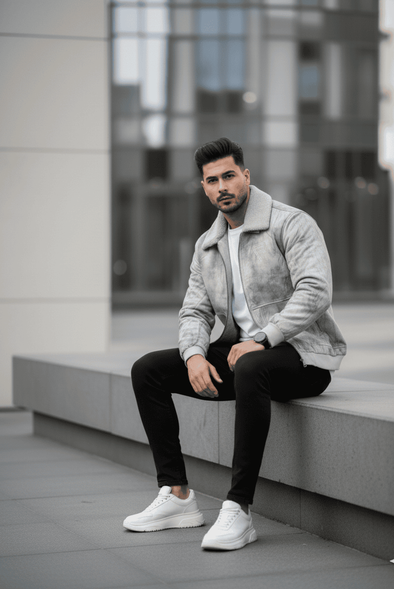 - Off-White Sherpa Collar: Adds contrast, warmth, and a sculpted silhouette that stands out in winter outfits.