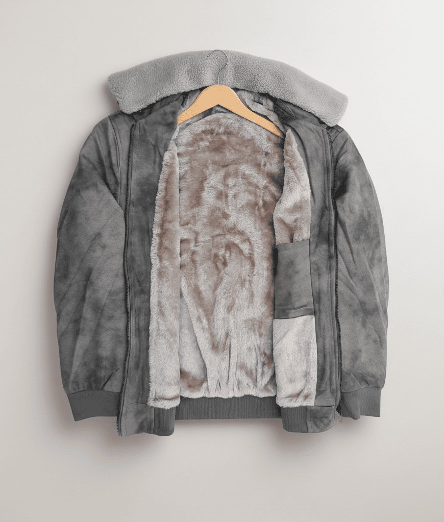 Upgrade your winter wardrobe with the PSOUCBS User Die Colar Jacket Gray, a warm and stylish bomber jacket made for everyday comfort. It features a marbled gray outer shell and a soft faux-fur lining, giving it a clean streetwear look while keeping you insulated in cold weather.