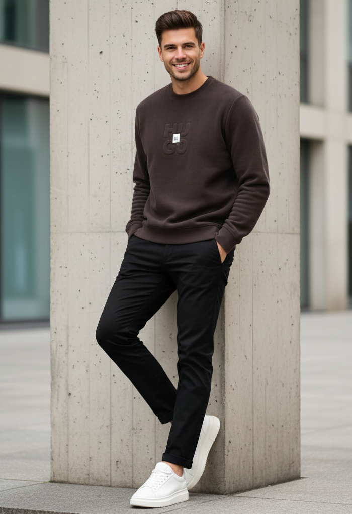 The Men’s HUGO Embossed Logo Rabbit Wool Blend Sweatshirt – Dark Chocolate Brown brings premium comfort and clean designer style into your everyday wardrobe. This rich brown color variant delivers a warm, refined look that pairs effortlessly with denim, trousers, or layered outerwear. Designed for men who enjoy understated luxury, this sweatshirt blends softness, structure, and a timeless silhouette.