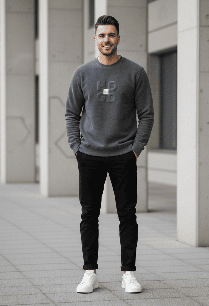This sweatshirt blends premium fabric with an easygoing fit. The rabbit wool blend gives it a soft feel while providing dependable warmth. Because of its relaxed build, the sweatshirt works well for daily wear, weekend outings, and casual evenings. The tone-on-tone embossed branding creates a luxury look without overpowering your outfit.