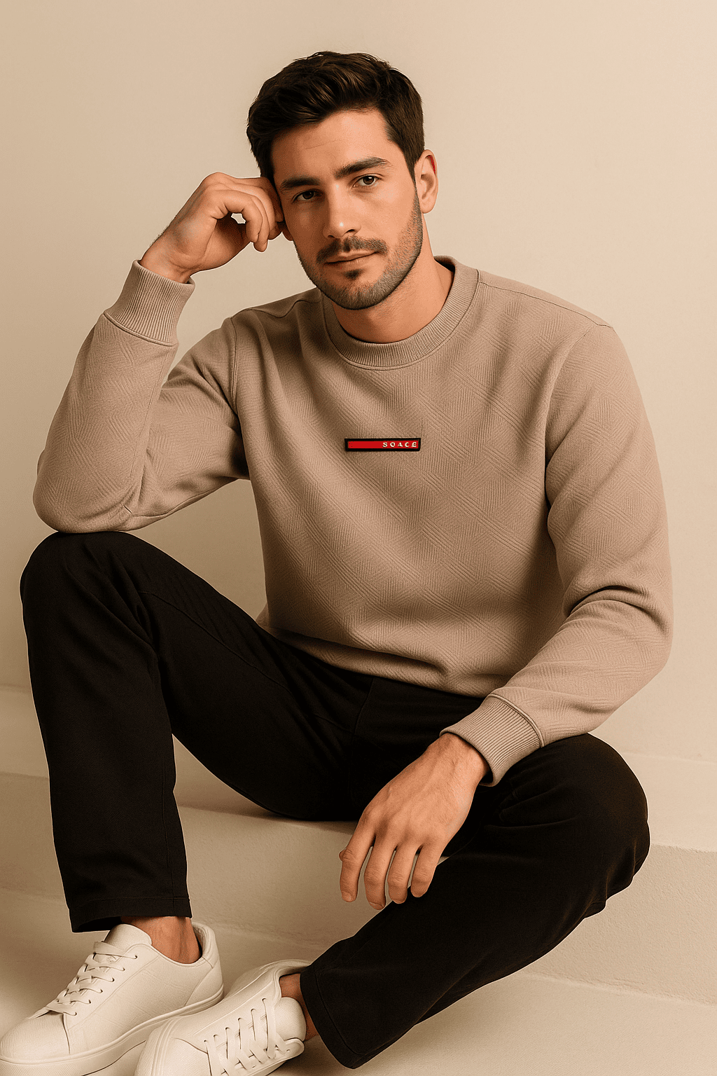 This men’s crewneck sweatshirt features ribbed cuffs, a ribbed hem, and a reinforced neckline for long-lasting durability and comfort. The signature Prada-style chest patch in red adds a refined, designer-inspired touch while maintaining the minimalist aesthetic. The Garsi material provides a premium surface texture, giving the sweatshirt a distinguished look that pairs well with jeans, chinos, or joggers.