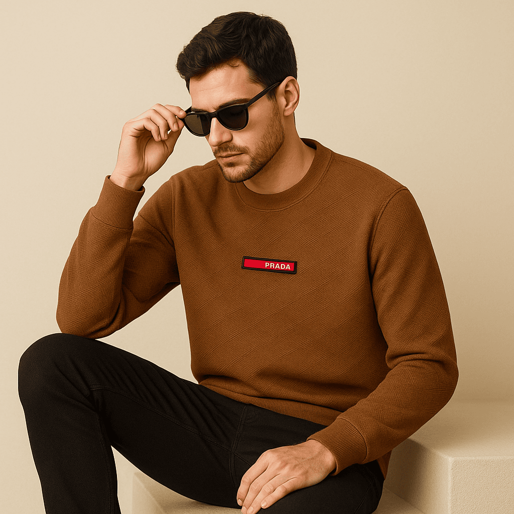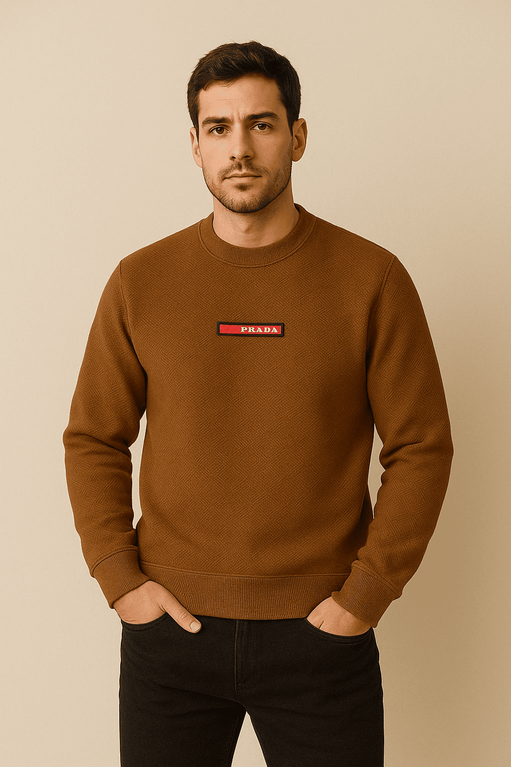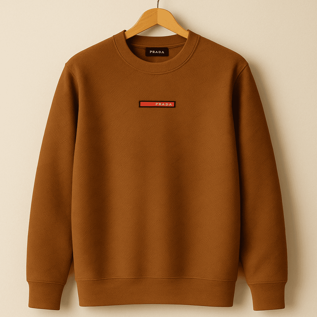 The Prada Garsi Sweatshirt Caramel Brown is the perfect expression of luxury comfort, modern minimalism, and premium craftsmanship. Designed in a rich caramel-brown shade, this sweatshirt is crafted from high-quality Garsi textured fabric, known for its durability, soft structured feel, and subtle geometric pattern. The clean design is elevated by a premium Prada-style chest patch that delivers a bold yet elegant designer touch.